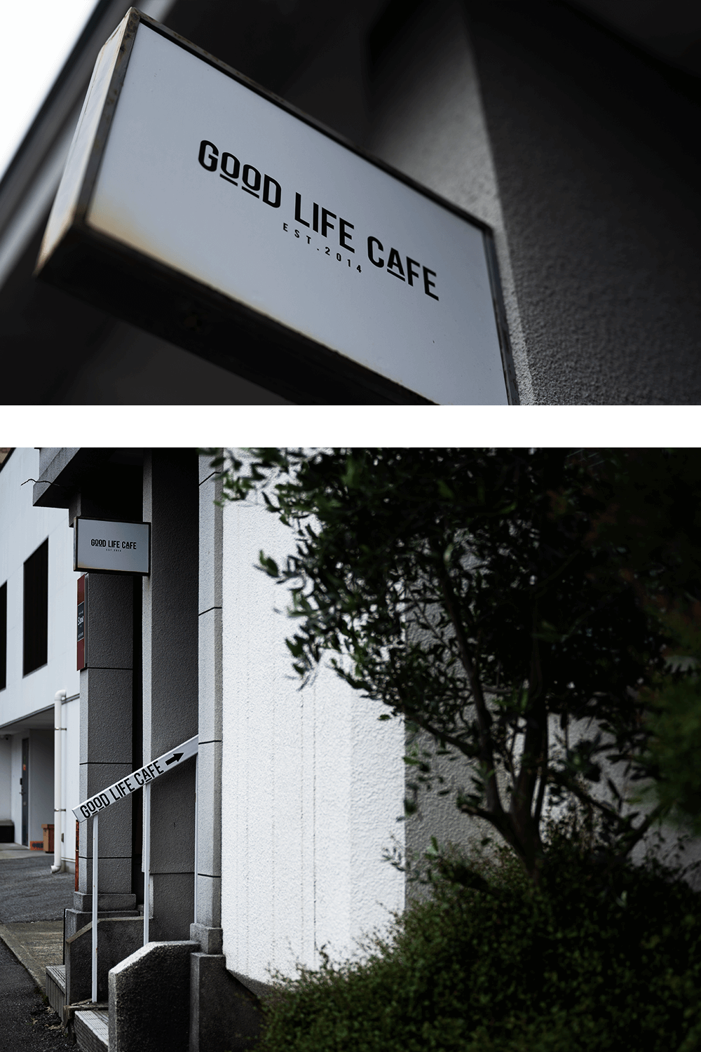 知る人ぞ知る秘密の入口のように「GOOD LIFE CAFE」の看板と矢印が……。