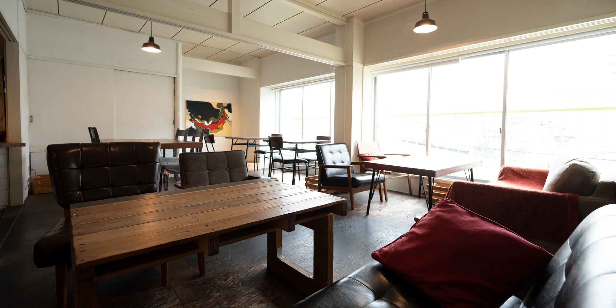 ヴィンテージウッド風のカウンターやテーブル、ミッドセンチュリー風のソファが並ぶ店内には、レコードの音楽と一緒にゆったりとした時間が流れます。